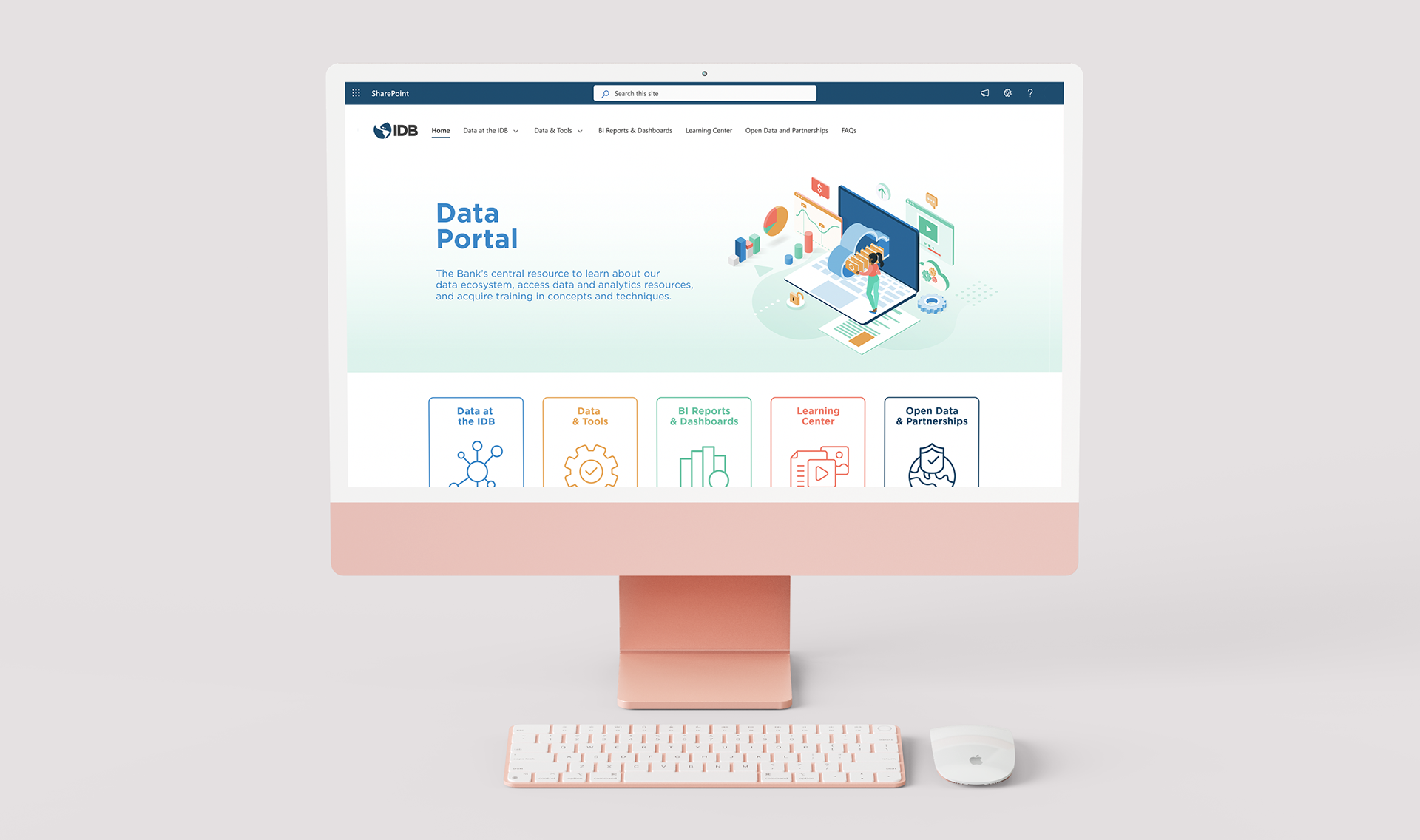 The Data Portal is the IDB’s internal website that centralizes data-related resources, including analytics tools, dashboards, training materials, governance information, and access to datasets.